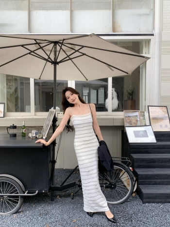 【Z828726】小姐姐溫柔風木耳邊蕾絲吊帶連身裙