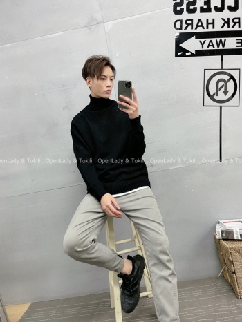 【Z720020】坑條紋微高領毛衣