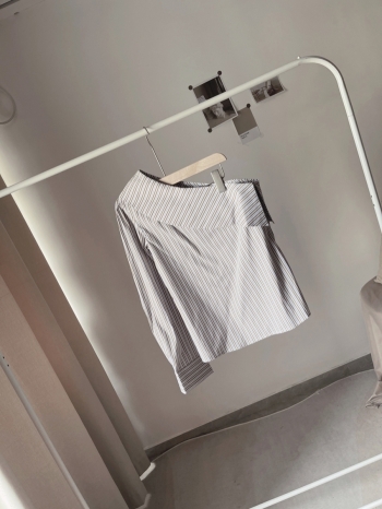 【Z825836】單邊露肩條紋襯衫