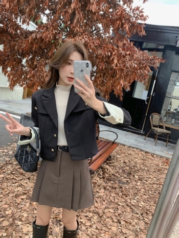 【Z826024】附腰壓摺西裝短裙