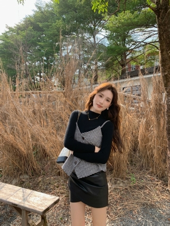 【Z828015】高腰顯瘦側抓皺交叉皮短裙