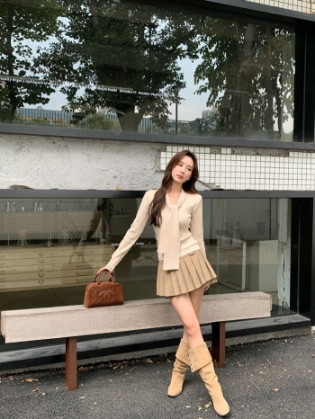 【Z828025】秋冬麂皮百褶短裙