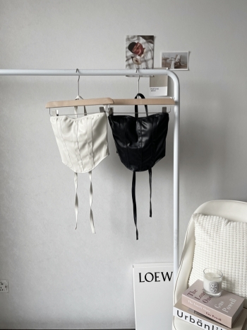 【Z828080】韓版掛脖綁帶不規則皮革背心