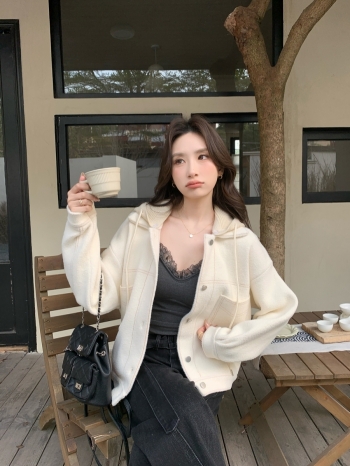【Z828389】韓系明線設計拼接針織帽可拆保暖外套