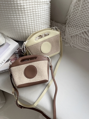 【Z828566】ins復古風編織抽繩拼接水桶包