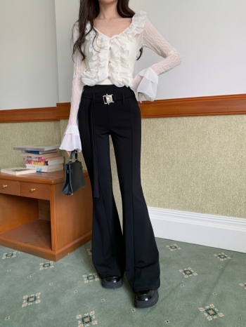 【Z828555】設計感綁帶高腰垂感修身喇叭褲