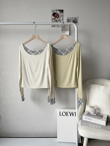 【Z828583】小眾心機修身設計拼接露肩上衣