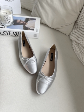 【Z828607】法式復古銀色淺口蝴蝶結平底鞋