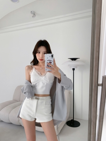 【Z828680】純色簡約口袋附腰帶闊腿短褲
