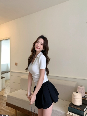 【Z828714】設計感蕾絲拼接腰頭減齡少女風短裙