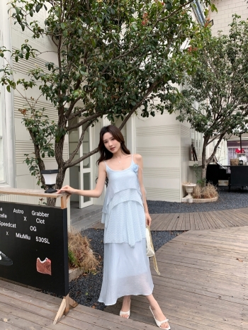 【Z828719】法式溫柔風蕾絲拼接不規則感細肩洋裝