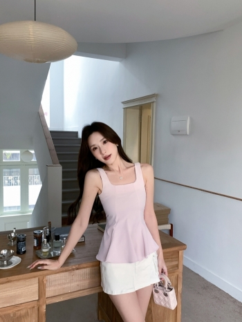 【Z828722】優雅時尚傘擺設計感壓褶綁帶背心上衣