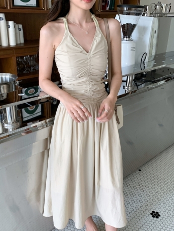 【Z828899】氣質性感抽繩褶皺V領連身裙