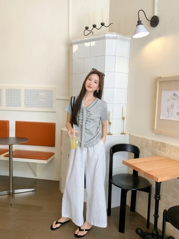 【Z828974】簡約風寬鬆條紋直筒寬褲