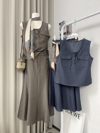 【Z829010】亞麻U領無袖背心+長裙套裝