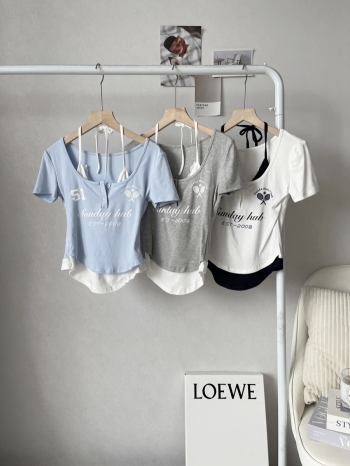 【Z829025】假兩件蕾絲拼接掛脖休閒上衣