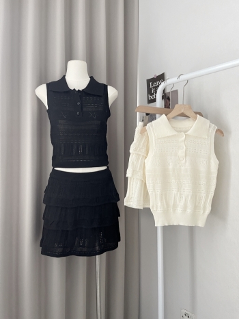 【Z829082】緹花鏤空針織背心+荷葉邊蛋糕裙