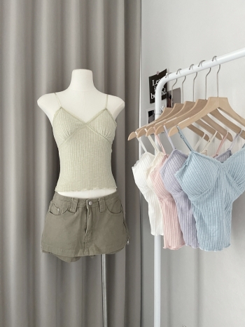 【Z829089】甜美芭蕾風V領蕾絲邊細肩背心