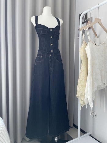 【Z829103】深藍天絲垂感闊腿牛仔褲