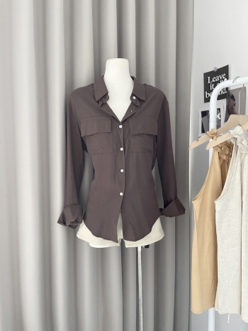 【Z829131】港風復古棕色工裝長袖襯衫