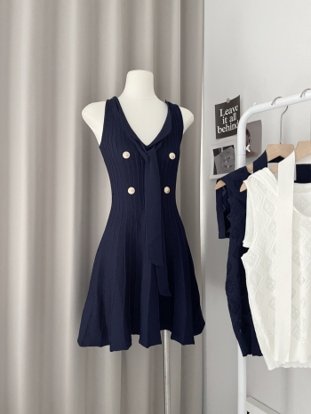 【Z829145】小香風金屬扣收腰綁帶針織連身裙