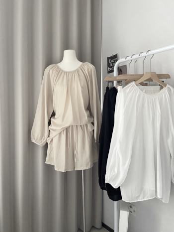 【Z829213】露背繫帶防曬衫+短褲套裝