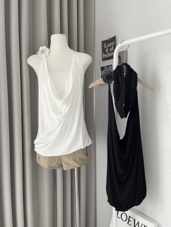 【Z829201】性感氣質掛脖花朵蕩領上衣