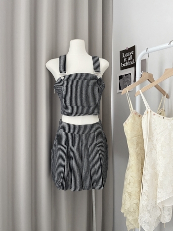 【Z829096】黑白高級感時尚條紋吊帶裙套裝