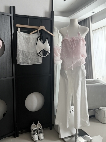 【Z829411】甜辣褶皺碎花抹胸背心兩件套