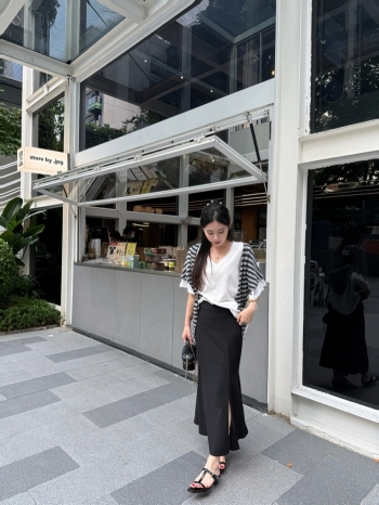 【Z829472】氣直百搭高腰垂感開衩魚尾裙