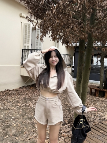【Z829535】太空棉抽繩連帽上衣短褲套裝