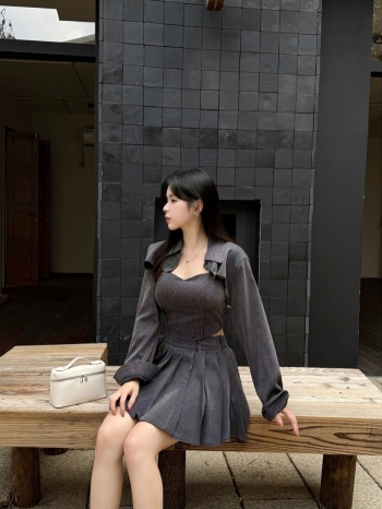 【Z829580】襯衫抹胸背心百褶裙套裝