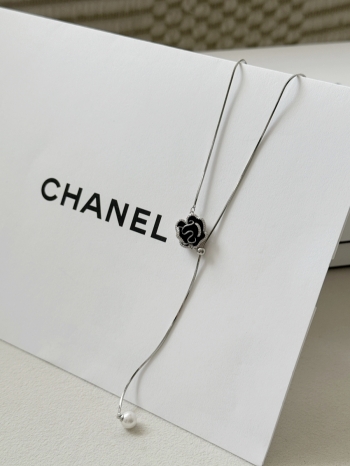 【Z829609】鑲鑽黑色山茶花可調式項鍊