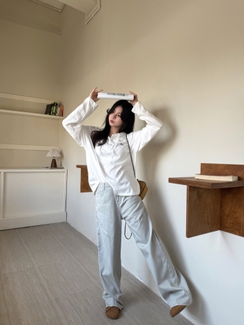 【Z829647】淺色作舊感水洗牛仔寬褲