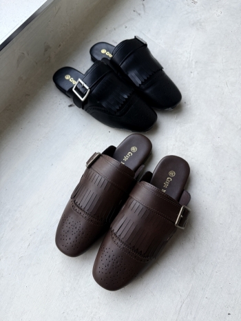 【Z829670】復古英倫流蘇真皮平底穆勒鞋