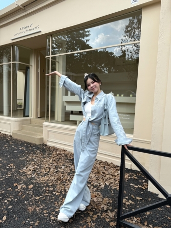 【Z829686】明線釘釦綁帶收腰長褲套裝