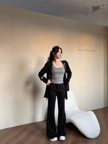 【Z829708】純色百搭罩衫喇叭褲套裝