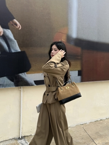 【Z829684】小香風菱格紋撞色真皮鍊條包