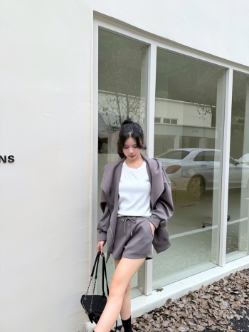 【Z829685】休閒百搭連帽外套+短褲套裝