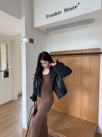 【Z829712】雙釦立領翻邊牛仔夾克外套