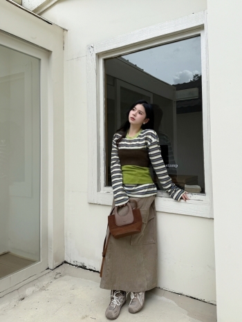 【Z829717】拼接針織抹胸+撞色條紋長T兩件套