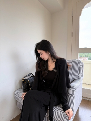 【Z829739】高級感V領修身披肩洋裝