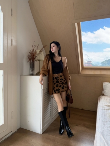 【Z829710】軟糯百搭豹紋針織罩衫套裝