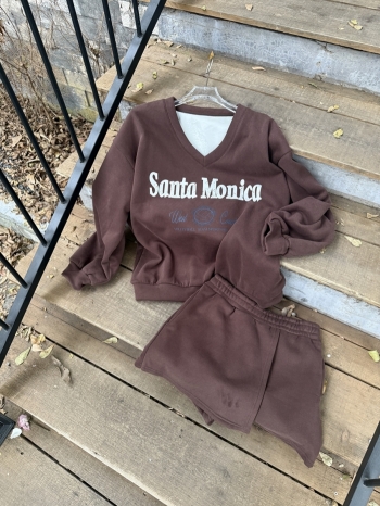 【Z829872】休閒V領字母印花褲裙套裝