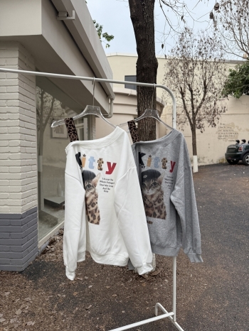 【Z829876】可愛豹紋貓咪印花露肩上衣