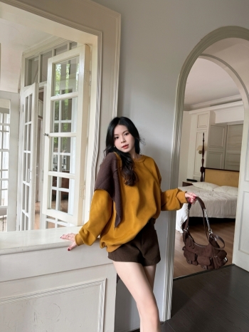 【Z829877】針織披肩純色圓領大學T