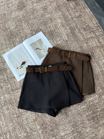 【Z829891】附皮帶不規則毛呢裙褲