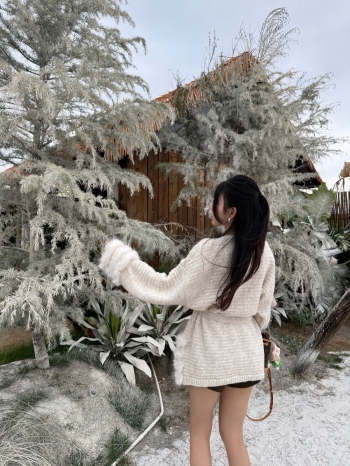 【Z829897】毛絨絨拼接綁帶針織外套
