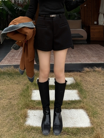 【Z829894】假口袋裝飾設計感毛呢短褲