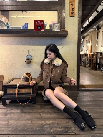 【Z829913】毛領釘釦霧皮短絨夾克外套